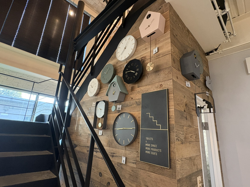 店内には、時計や家具などのインテリアアイテムが展示されており、気になった商品はオンラインで購入することも可能です。