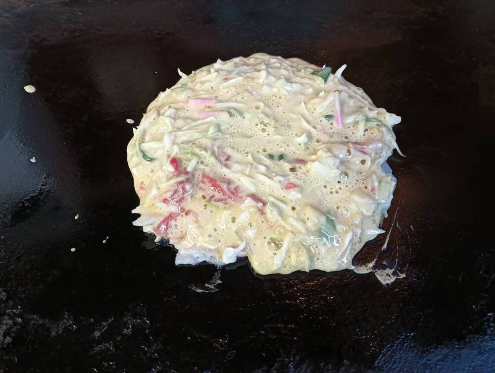目の前で焼かれるお好み焼きがおいしい!