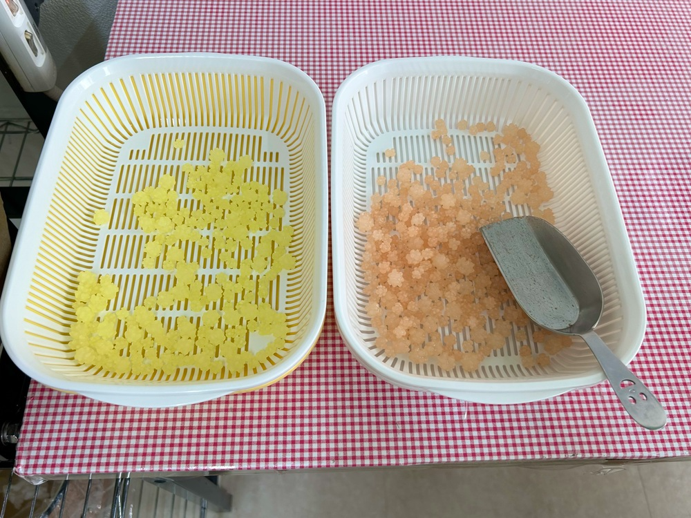 そこで今回は大小ミックスのサイズを選び、1回目は黄色の金平糖×サイダー味、2回目はピンク色の金平糖×パイン味の組み合わせに決定しました!