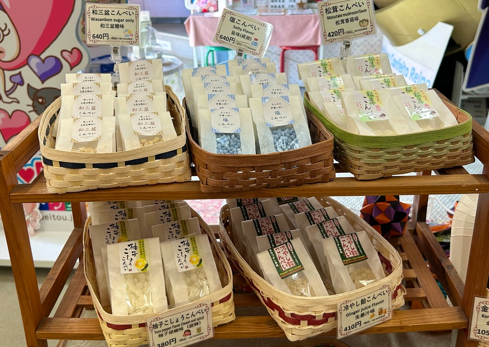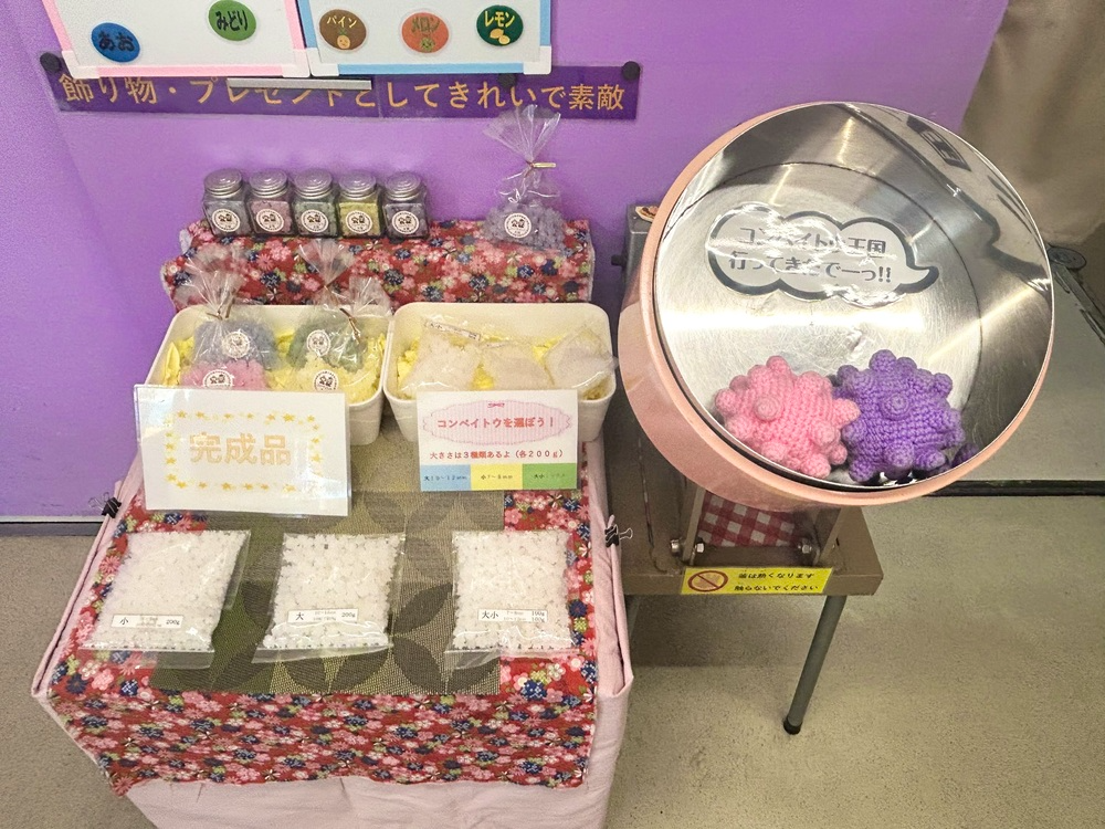 体験のあとは、1階のお土産コーナーで買い物を楽しめます。試食でいただいた金平糖も、こちらで購入できます。